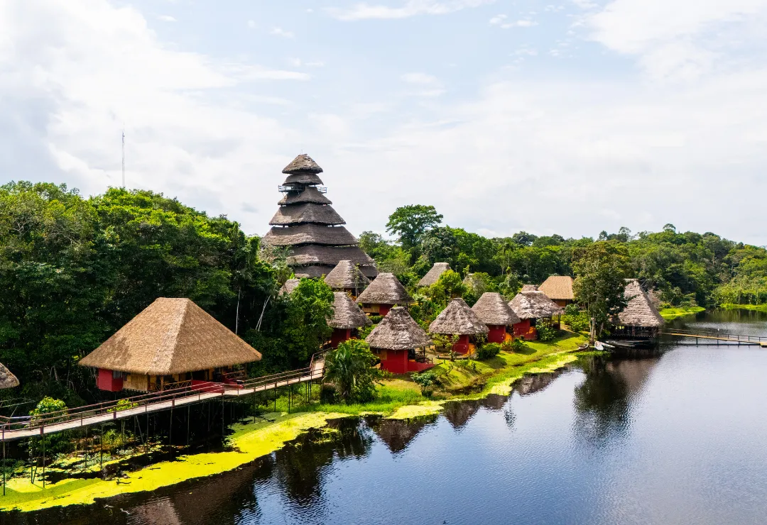 Napo Wildlife Center Eco Lodge sits inside Yasuní National Park, placing you at the heart of the Amazon Rainforest with community owned hospitality run 100% by the Anangu Kichwa. Arrive from Coca by canoe and step into a luxury ecolodge designed to blend with the forest while delivering comfort and style. Spacious cabins and suites face a tranquil lagoon, meals highlight fresh local flavors, and expert native and bilingual naturalist guides lead small group outings tailored to the season and wildlife activity. Mornings can start at the canopy observation tower with sweeping treetop views and spectacular birdwatching. Canoe silently along blackwater creeks to the famous parrot clay licks where macaws and parrots color the sky. Afternoon hikes reveal medicinal plants, monkeys, caiman and vibrant frogs, while optional night walks uncover the forest after dark. Your stay funds conservation, education, healthcare and clean energy projects that protect both culture and habitat. Seamless 4 to 8 day programs include river transfers, guided activities and park entry so every hour focuses on discovery, connection and genuine immersion.