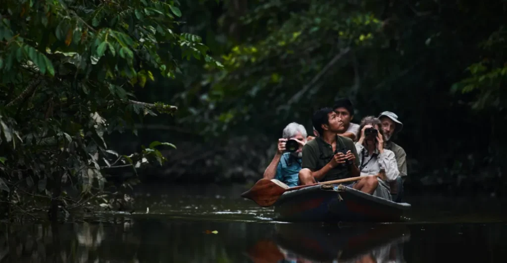 Guided excursions are planned to show the rhythm of the forest at different times. Early morning boat rides offer quiet moments on rivers where it is possible to spot birds, monkeys, river dolphins or caimans. Daytime hikes follow narrow trails under tall trees, where guides point out medicinal plants, insects, tracks, and hidden birds that an untrained eye would miss. After sunset, night walks or canoe outings reveal a different world of glowing fungi, tree frogs, and other nocturnal life.