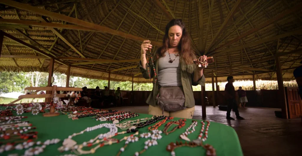 For guests, this collaboration appears in daily experiences. Local staff share traditional knowledge about plants, fishing, food, and stories that explain how different parts of the forest are connected. Visits to nearby communities are arranged with respect and consent, avoiding intrusive “human safaris” and favoring genuine encounters such as learning how people farm along the river or trying typical dishes. Handicrafts sold directly by artisans offer a way to bring home a memory while keeping more income in the community.