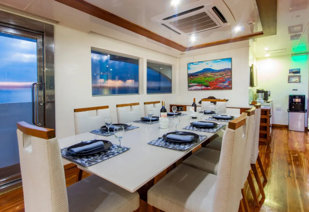 Step aboard the Infinity Galapagos Cruise and discover a modern luxury yacht designed for families, friends, and small groups who want comfort without compromise. Two generous suites and eight stylish cabins—some interconnecting—feature panoramic windows and private balconies that keep wildlife and volcanic horizons always in view. Spacious social areas invite you to settle in: al fresco dining and barbecue terraces for long sunsets, and a relaxed lounge for briefings and stargazing. Expert National Park–certified naturalist guides lead well-paced excursions that bring the archipelago’s natural laboratory to life. Kayak calm turquoise bays, snorkel among reef fish, turtles, and sea lions, and hike moon-like lava trails between quiet beaches. Thoughtfully planned 4, 5, and 8-day programs balance iconic sites with time to unwind, while attentive onboard service keeps logistics effortless from embarkation to farewell. For travelers seeking style, privacy, and meaningful encounters, this is the Galapagos islands Cruise that turns a dream of the islands into a polished, unforgettable reality.